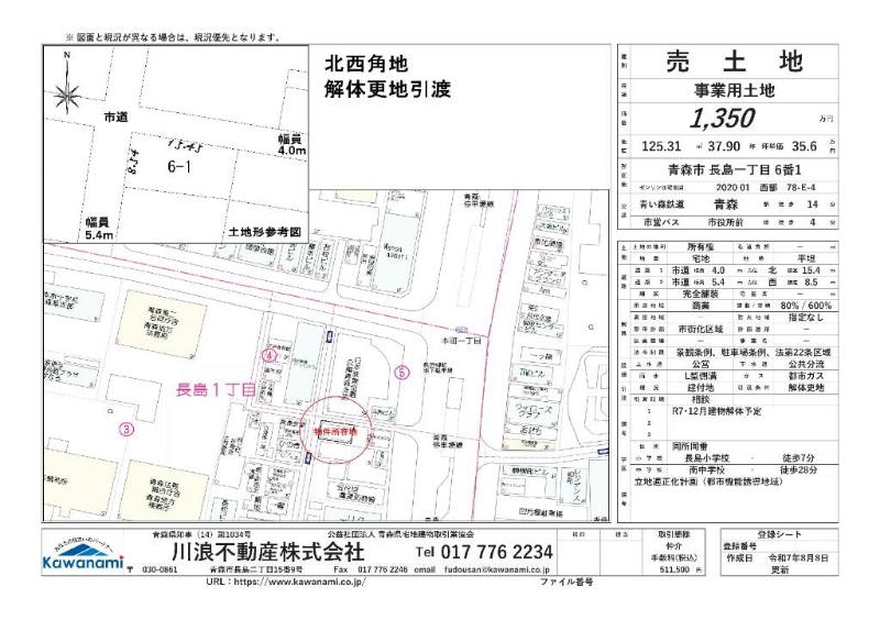 青森市長島エリアの土地相場情報(青森市の集計結果です)